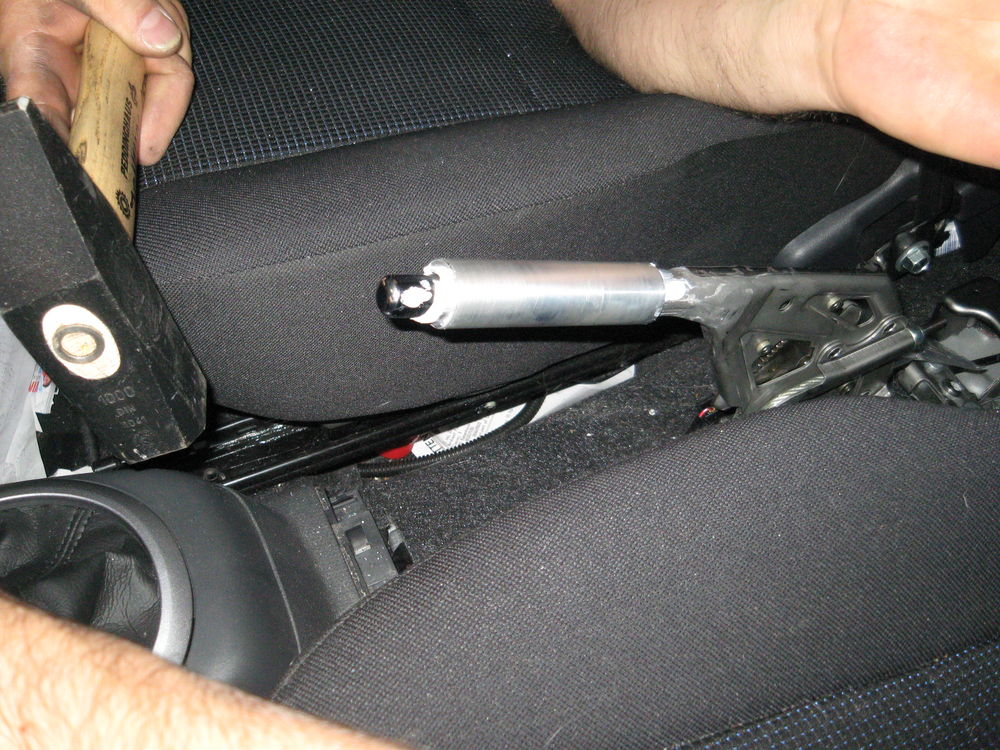 Held og lykke med håndbremsen :o) Når du har fjernet det originale, skal du være opmærksom på at selve håndbremsen (stålet) er ret smalt, og det er derfor ikke sikkert at den nye håndbremse vil passe ned over - uden at der monteres et mellemstykke.