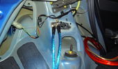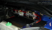 Så blev det færdig. Så blev det færdig. Strømmen helt færdig. Forstærkeren er godt gemt væk. Lidt stelforbindelser. Den nye  subkasse. Så blev der lavet klar til lidt strøm, 50 kabel fra batteriet igennem en fælles sikringsholder og vidre til en splitter til 2 stk 25 kabler Lidt rustfritslål skal der til, syntes selv at det blev rigtig godt. Kabler trukket ud i dørene og så kom er lige et på ledninger med til fremtidige projekter